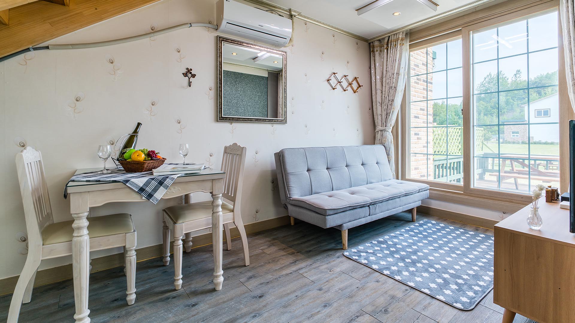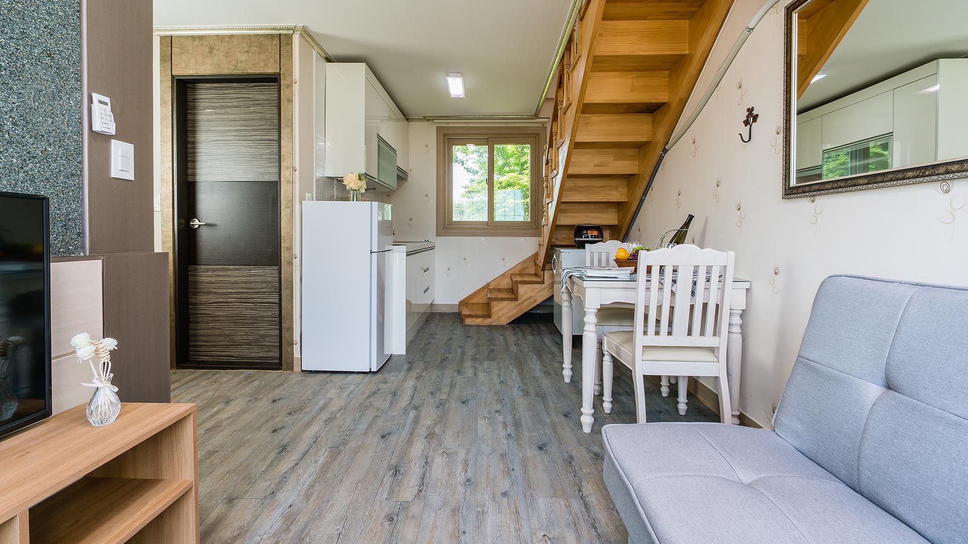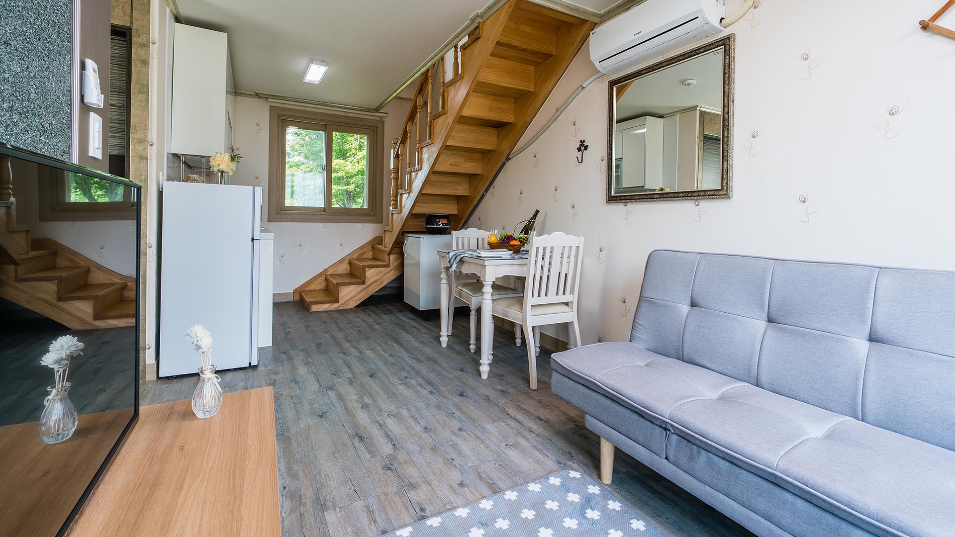 복층형 구조, 기준 인원 3명, 최대 인원 5명(기준 인원 초과 시 1인당 2만원, 36개월 미만 무료)