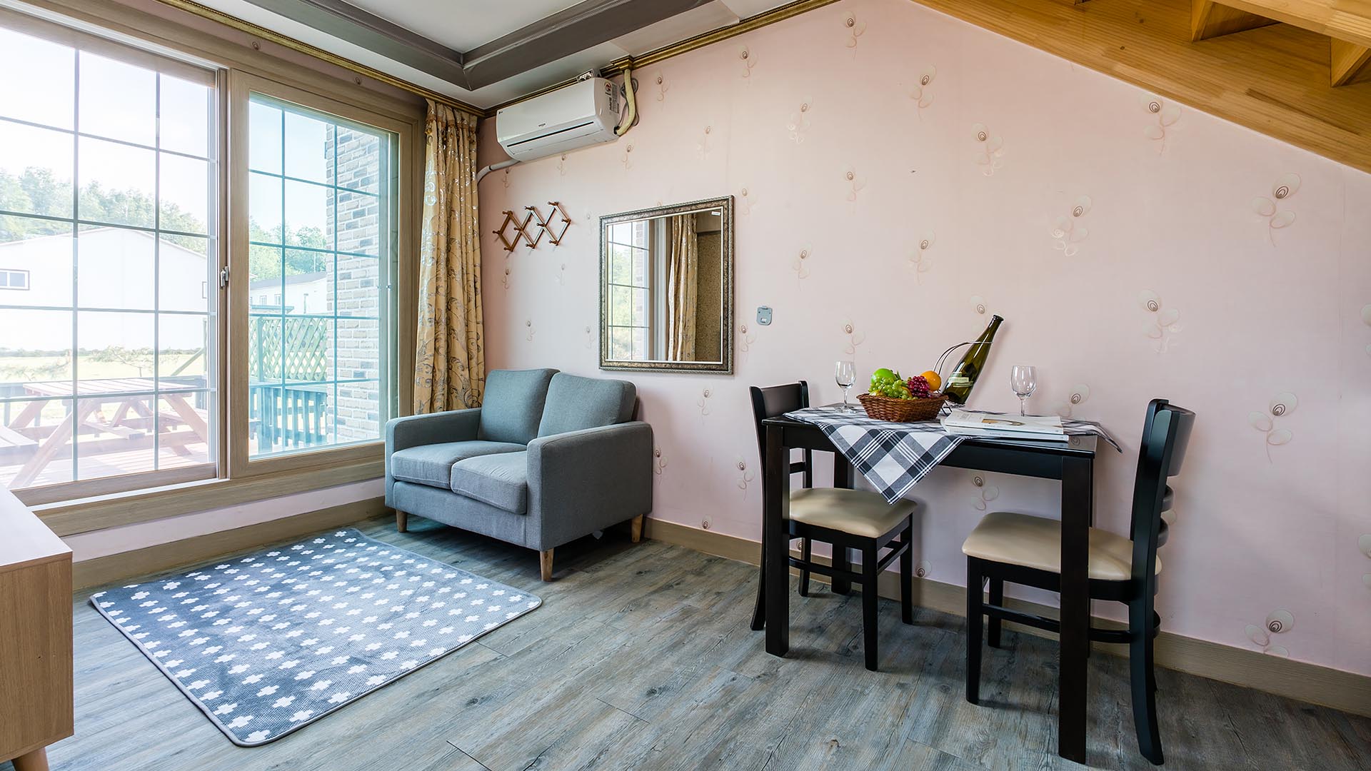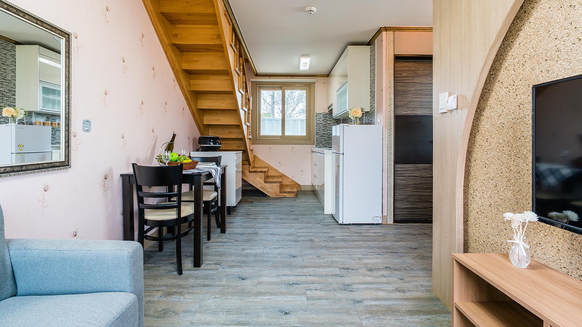 복층형 구조, 기준 인원 3명, 최대 인원 5명(기준 인원 초과 시 1인당 2만원, 36개월 미만 무료)